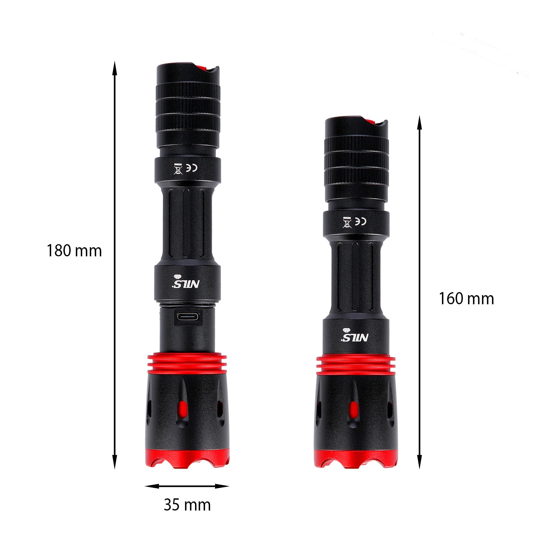 Aluminiumshus med tekstureret greb og vandafvisning IP65 klarer regn, støv og krævende forhold. Håndledsstrop øger sikkerheden ved bæring.