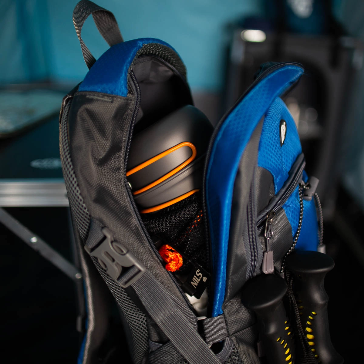 Med følger også et sammenklappeligt bestik (ske, gaffel, kniv) med skyde-lås mod utilsigtet sammenklapning, som efter brug opbevares i en praktisk pose med velcrolukning. Gryden har en skala til præcis dosering og en nyttig volumen på 0,8 l, mens grydepanden rummer 0,35 l – ideelt til hurtig kogning af vand, supper eller simple retter på brænderen.