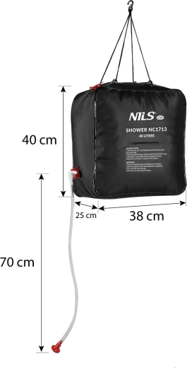 Nyd komforten ved varmt vand også uden for civilisationen. Solbruseren NILS Camp med en volumen på 40 liter opvarmes naturligt af solenergi – det sorte materiale fremskynder opvarmningen, og vandet kan nå op til 48 °C. Takket være 4 øjer og de medfølgende snore med krog hænger du den nemt på en gren, markise eller tagbærer.