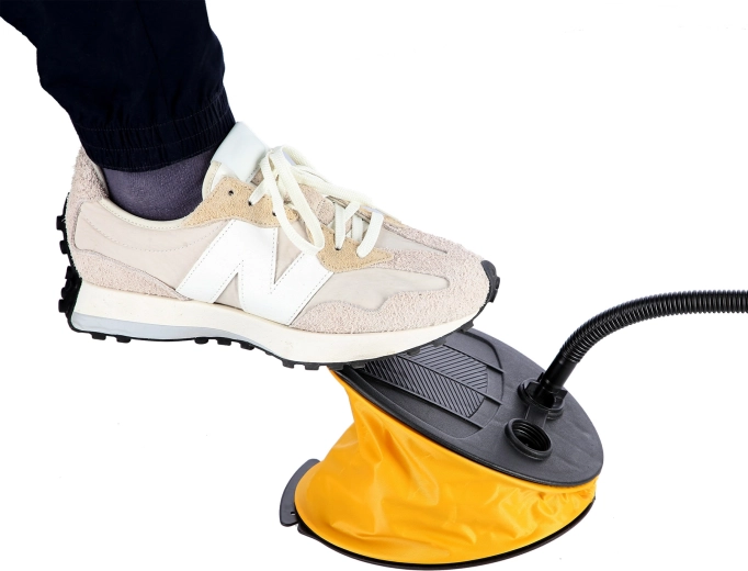 Takket være den lave vægt (400 g), PVC-konstruktion og sammenklappeligt design kan pumpen nemt pakkes i rygsæk eller kuffert. Slangen på 105 cm giver bevægelsesfrihed uden unødvendig bøjning. Ideel til luftmadrasser, badelegetøj, både, sækkestole og andet udstyr.