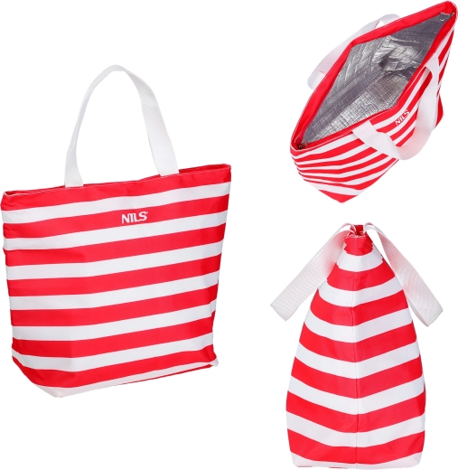 Det rummelige hovedrum rummer nemt flasker, snacks og bokse. Den brede topåbning giver nem adgang til indholdet, mens det tidløse stribede design i rød og hvid tilfører stil til dit sommerudstyr.