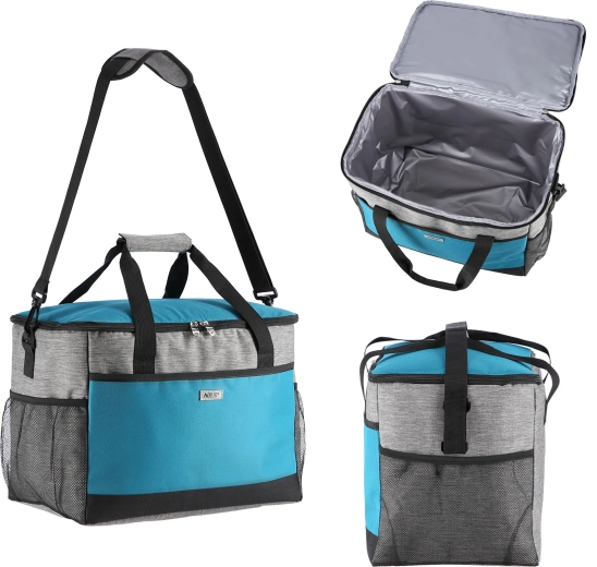 Tasken er designet til maksimal komfort: Det rummelige hovedrum suppleres af to side-netlommer og en frontlomme med lynlås til småting, der ikke kræver køling. Med den justerbare skulderrem og de solide håndtag kan du vælge, om du vil bære den over skulderen eller i hånden.