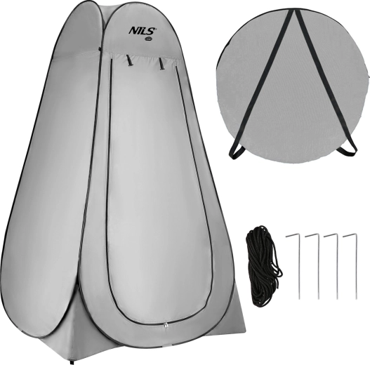 Nyd total komfort og diskretion under camping, på stranden og til festivaler. Kabinettet er fremstillet af holdbar polyester med vandafvisende belægning og har indvendigt en sølvfarvet isolerende belægning for bedre termisk komfort og solbeskyttelse. Det uigennemsigtige materiale garanterer fuldt privatliv ved omklædning og brusebad.