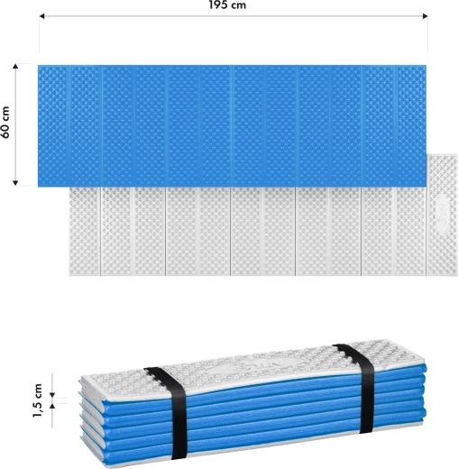Let og holdbart liggeunderlag til camping og trekking, der giver pålidelig isolering, vandafvisning og nem rengøring. Takket være XPE-skum og et aluminiumsreflekslag beskytter det effektivt mod kulde, forbliver tørt og er hurtigt klar til brug. Den harmonika-sammenklappelige konstruktion sparer plads, og stropper holder underlaget kompakt sammenpresset. Generøse mål sikrer behagelig hvile selv for højere personer.