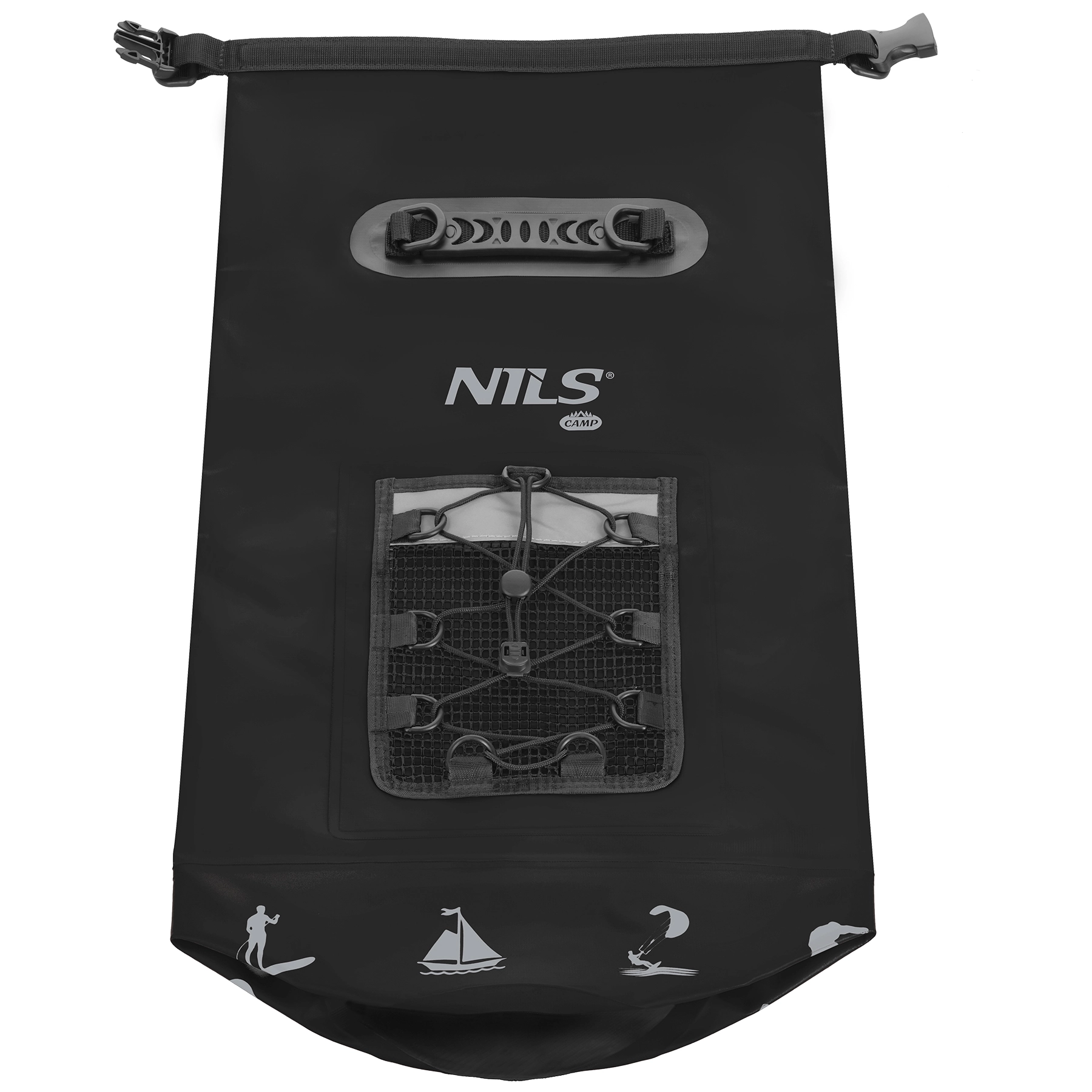 Tasken tilbyder aftagelige og justerbare skulderstropper for behagelig bæring som rygsæk eller i hånden takket være det formede håndtag. Foran finder du en mesh-lomme med elastiksnor til flaske eller småting, du vil have lige ved hånden. Den kompakte, cylindriske konstruktion gør det let at pakke i kajak, kano og bilens bagagerum.