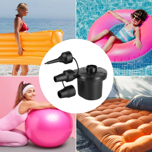 I pakken finder du både 230 V netadapter og 12 V adapter til cigarettænder, så du kan bruge pumpen hjemme og på farten. Tre udskiftelige mundstykker (6/17/22 mm) sikrer kompatibilitet med de fleste ventiler. Holdbare materialer og lav vægt gør transport og opbevaring nemmere.
