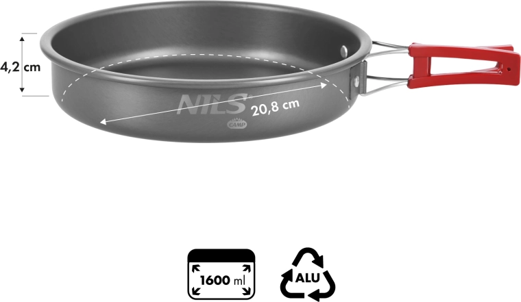 Denne alsidige turpande kombinerer kompakt design med høj funktionalitet. En diameter på 20,8 cm, højde 4,2 cm og volumen 1600 ml gør den perfekt til at stege æg, grøntsager eller pandekager samt til sautering eller opvarmning af færdigretter. Takket være den lave vægt og det sammenklappelige håndtag kan den nemt pakkes i rygsækken.