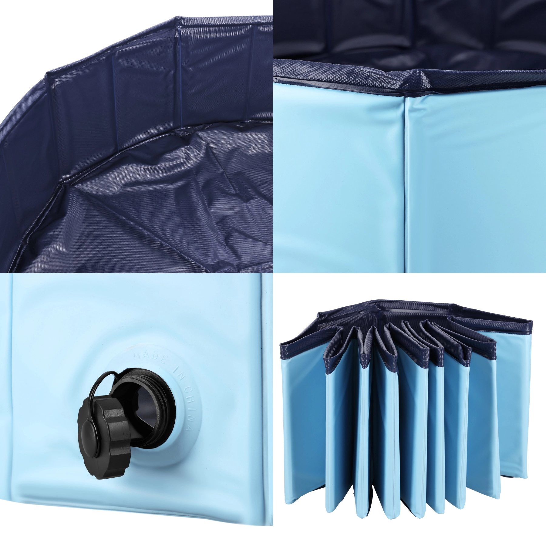 Den praktiske afløbsåbning gør det nemt og hurtigt at tømme vandet og derefter folde bassinet sammen til kompakte mål for problemfri opbevaring og transport. Målene 100 × 30 cm og volumen 235 liter er ideelle til små og mellemstore hunde, som vil sætte pris på sikker afkøling og behagelig badning.