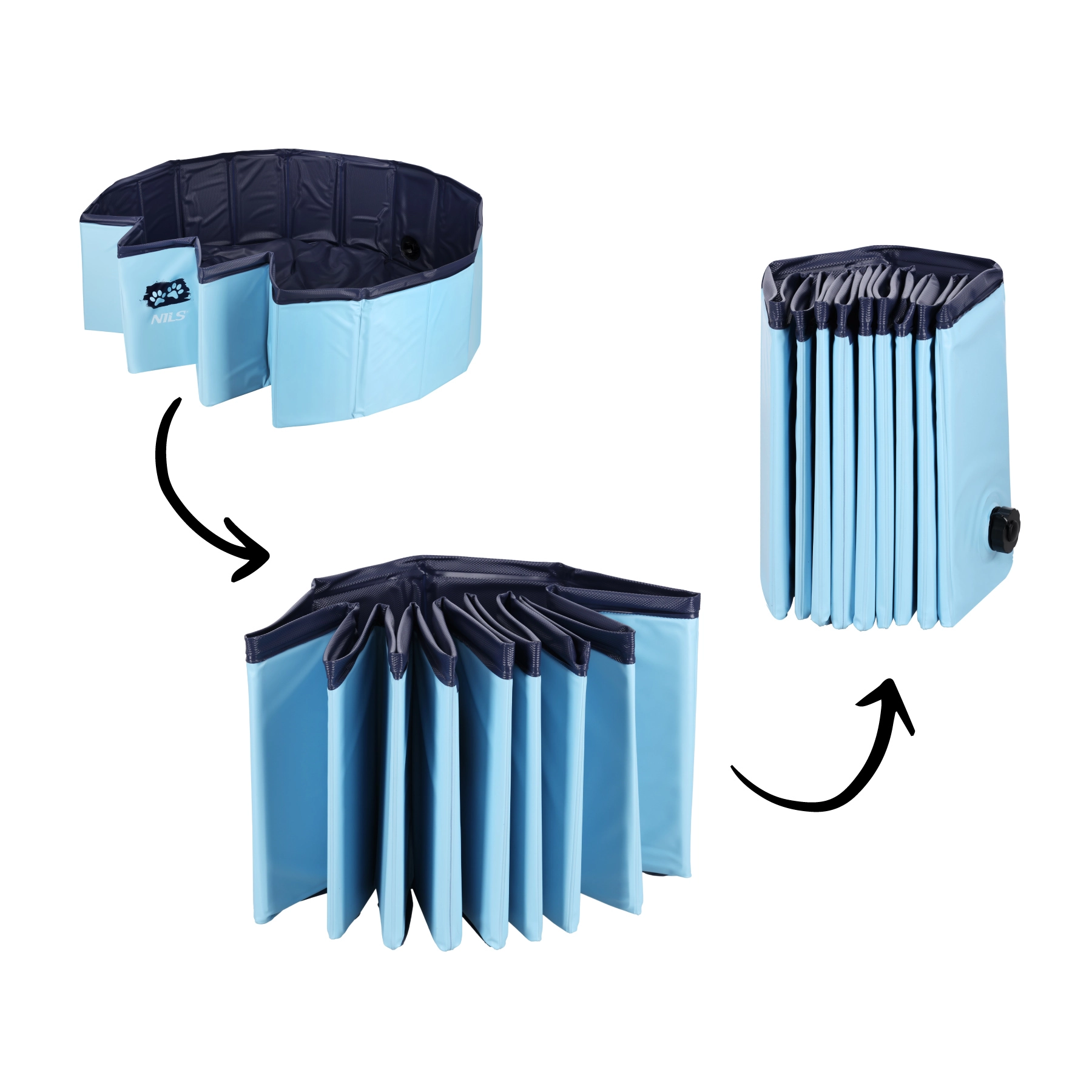 Det sammenklappelige hundebassin NILS er et fremragende valg til varme dage i haven, på terrassen eller altanen. Takket være det robuste PVC og de indvendige forstærkninger af MDF bevarer det form og stabilitet selv under vildere vandlege. Det ikke-oppustelige design sikrer hurtig brug – fold blot ud, fyld, og så kan legen begynde.