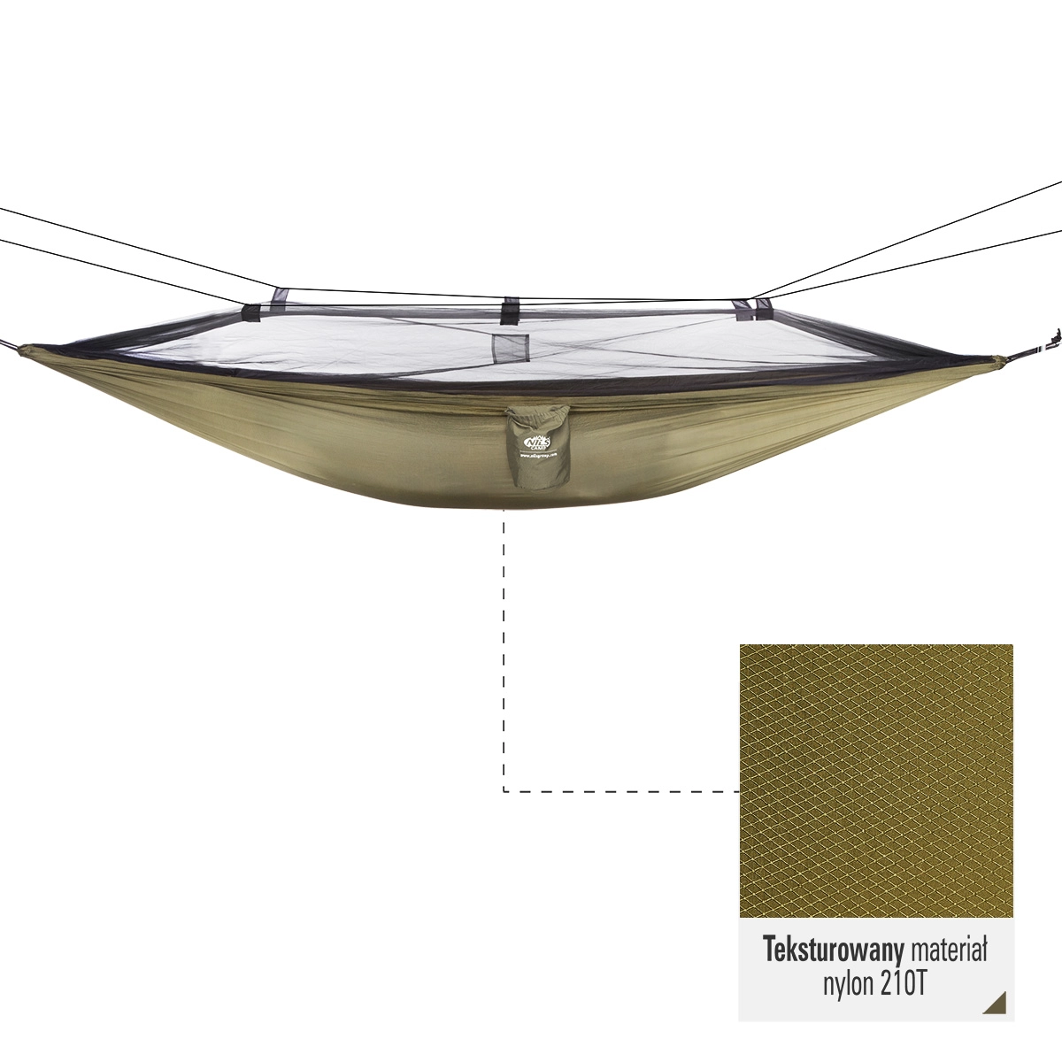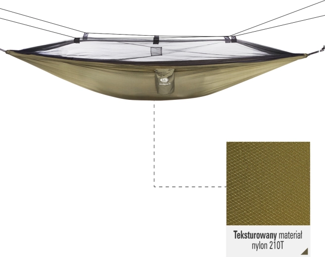 Nyd komfort og beskyttelse i naturen med hængekøjen NILS Camp NC3116. Det integrerede myggenet fastgøres med lynlås og spændes ud med liner i fire punkter, hvilket skaber en effektiv barriere mod insekter. Man lægger sig i hængekøjen som i en “lomme”, hvilket øger stabiliteten og sikkerheden under søvn og afslapning.
