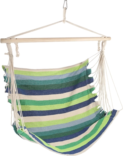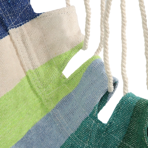 Den brasilianske hængestol NILS Camp er designet til afslapning i haven, på altanen eller på camping. Stoffets sæde i T/C-lærred (60 % polyester, 40 % bomuld) formes af stærke reb, der føres over en træstang og samles i en sikker ophængsøje. Hæng den blot i passende højde, og nyd rolig gyngen under læsning eller hvile.