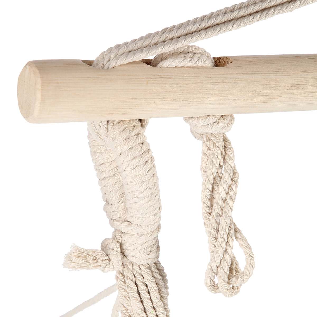 Kraftige bomuldsreb med robust karabin og sikringsknuder giver stabil fastgørelse og en rolig, jævn bevægelse under gyngning.