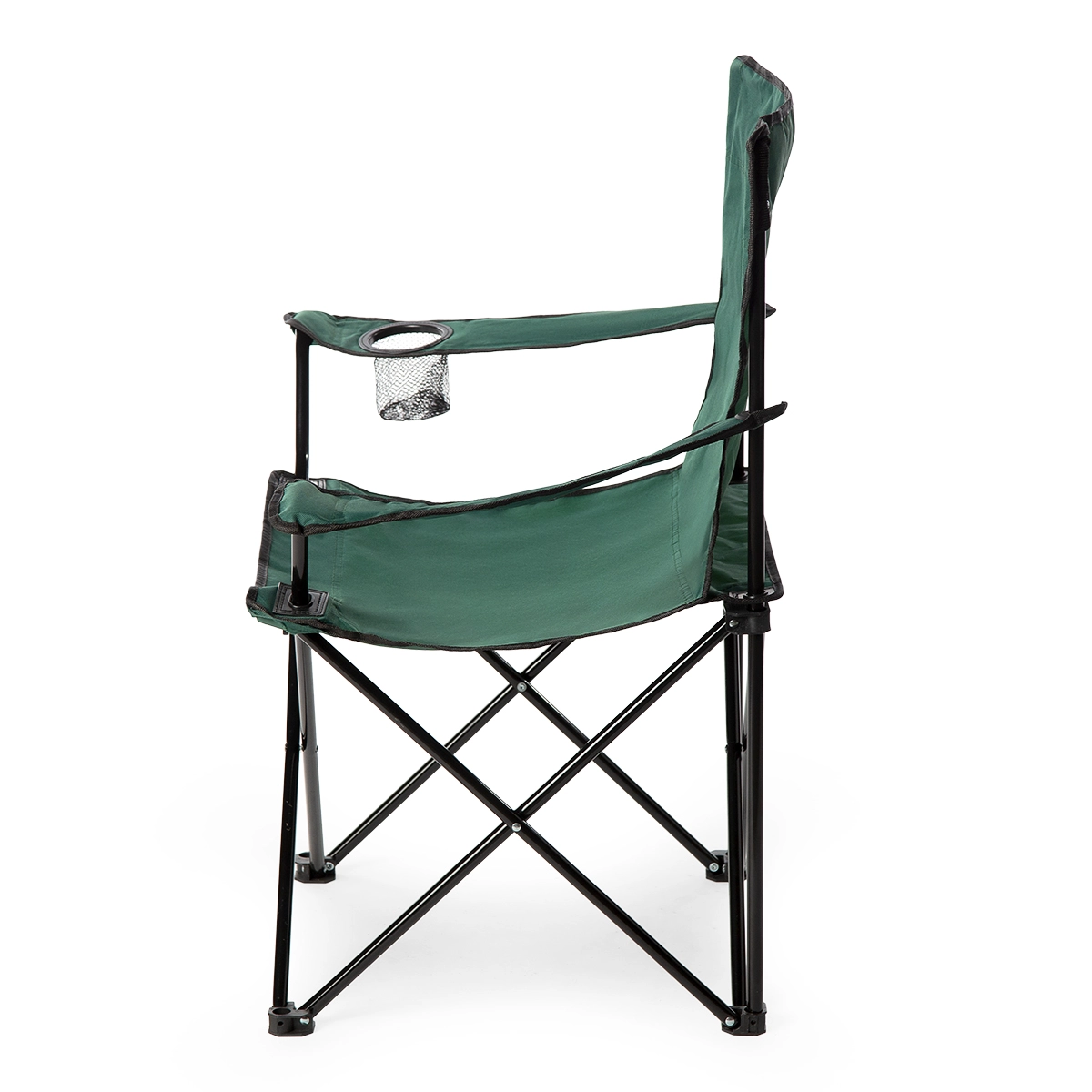 For ekstra komfort har stolen justerbare armlæn og en integreret kopholder til flaske eller høj kop. Takket være hurtig sammenklapning og lav vægt er den perfekt til rejser, picnic og sportsbegivenheder.