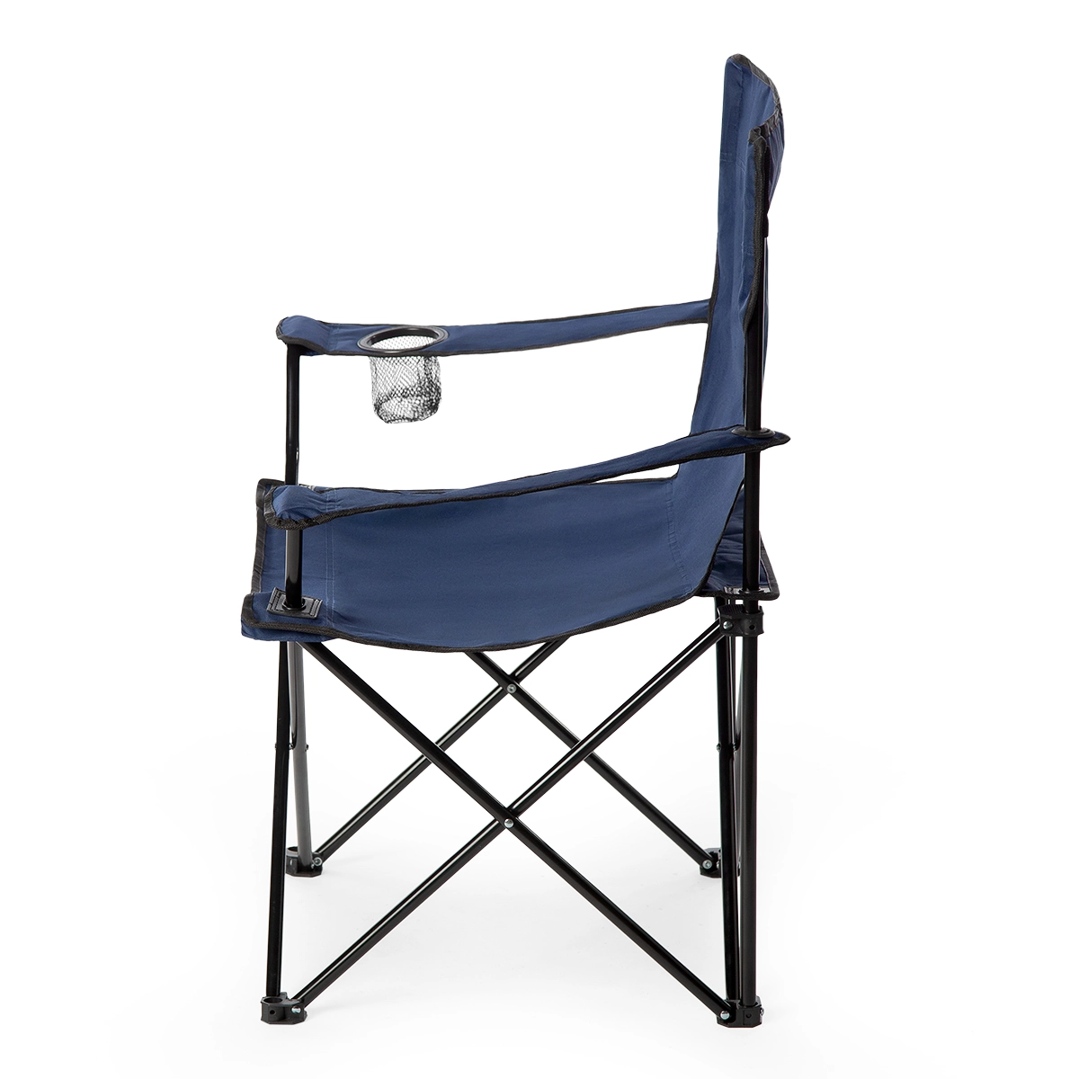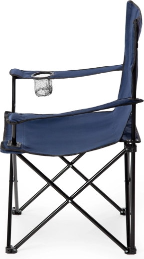 Gennemtænkte detaljer øger siddekomforten: justerbare armlæn kan nemt tilpasses, og i den integrerede kopholder kan du sikkert placere flaske eller bæger. Plastfødder med firkantet base sikrer stabilitet og forhindrer, at stolen synker ned i blødt underlag. Når dagen er slut, kan den foldes sammen på et øjeblik til en kompakt form for nem transport.