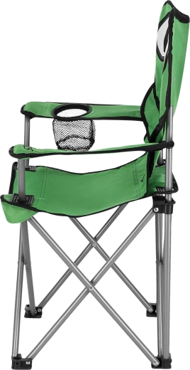 For de små campisters komfort er den udstyret med justerbare armlæn og en kopholder i højre armlæn. Firkantede plastfødder øger stabiliteten og forhindrer, at den synker ned i blødt underlag. Sammenklappet har den kompakte mål og med pose med skulderrem er den nem at transportere.