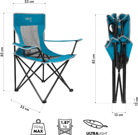 Sammenklappelig turstol NILS Camp NC3302 blå‑grå