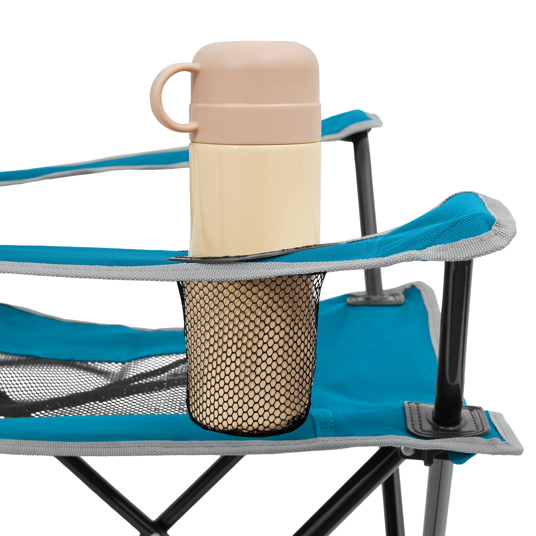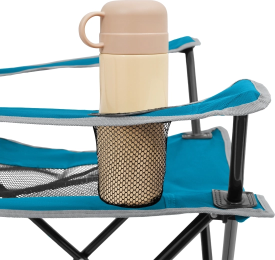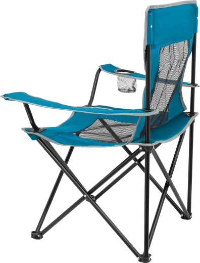 Let og stabil turstol til camping, festivaler og fiskeri. Tilbyder holdbar konstruktion, åndbart netstof, integreret kopholder og kompakte mål efter sammenklapning for nem transport.