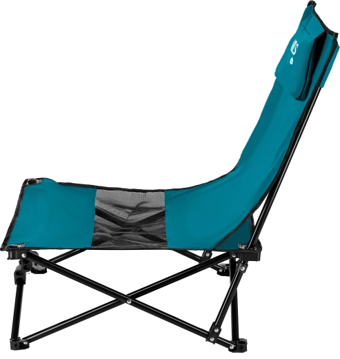 Ergonomisk sæde og ryglæn med ventilation giver behagelig siddekomfort i halvliggende position – ideel til strand, picnic og festival.