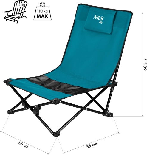 Den sammenklappelige strandstol NILS Camp er det ideelle valg til stranden, ved søen, i camping og til festivaler. Den solide stålramme med pulverlakering modstår korrosion og skiftende vejrforhold, mens betrækket af polyester 600D med PVC er modstandsdygtigt over for slid, fugt og er let at rengøre. Takket være den ergonomiske form på sæde og ryglæn får du komfort selv ved længere tids siddende.