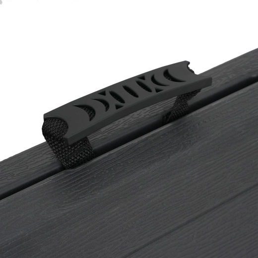 Bordet foldes på få øjeblikke uden værktøj. I sammenfoldet tilstand har det et praktisk håndtag og minimale mål på 91 × 74 × 7 cm for nem transport og opbevaring.