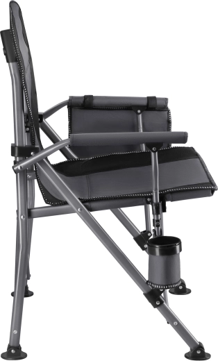 Gennemtænkte detaljer øger siddekomforten: kopholder til flaske eller dåse, tre lommer til telefon og småting samt transporttaske med rem for hurtig og bekvem transport. Stolen foldes ud på få sekunder – det ideelle valg for lystfiskere, campister og dem, der nyder aftener ved bålet.