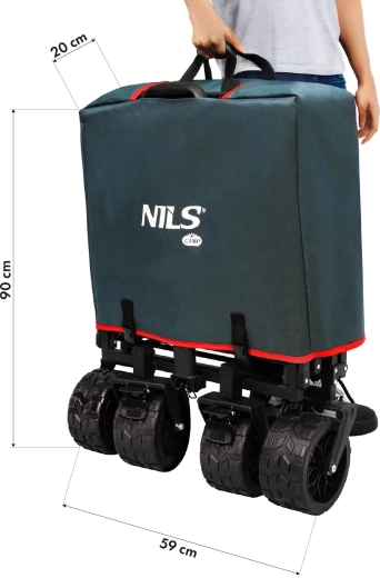NILS Camp NC2601-vognen er en alsidig hjælper til rejser, camping og strandture. Den stabile stålkonstruktion med pulverlak tåler korrosion og belastning, mens kassen af 600D Oxford-tekstil klarer krævende forhold. Med et volumen på 160 liter og en bæreevne på 100 kg transporterer du nemt udstyr til picnic, sport og weekendture.