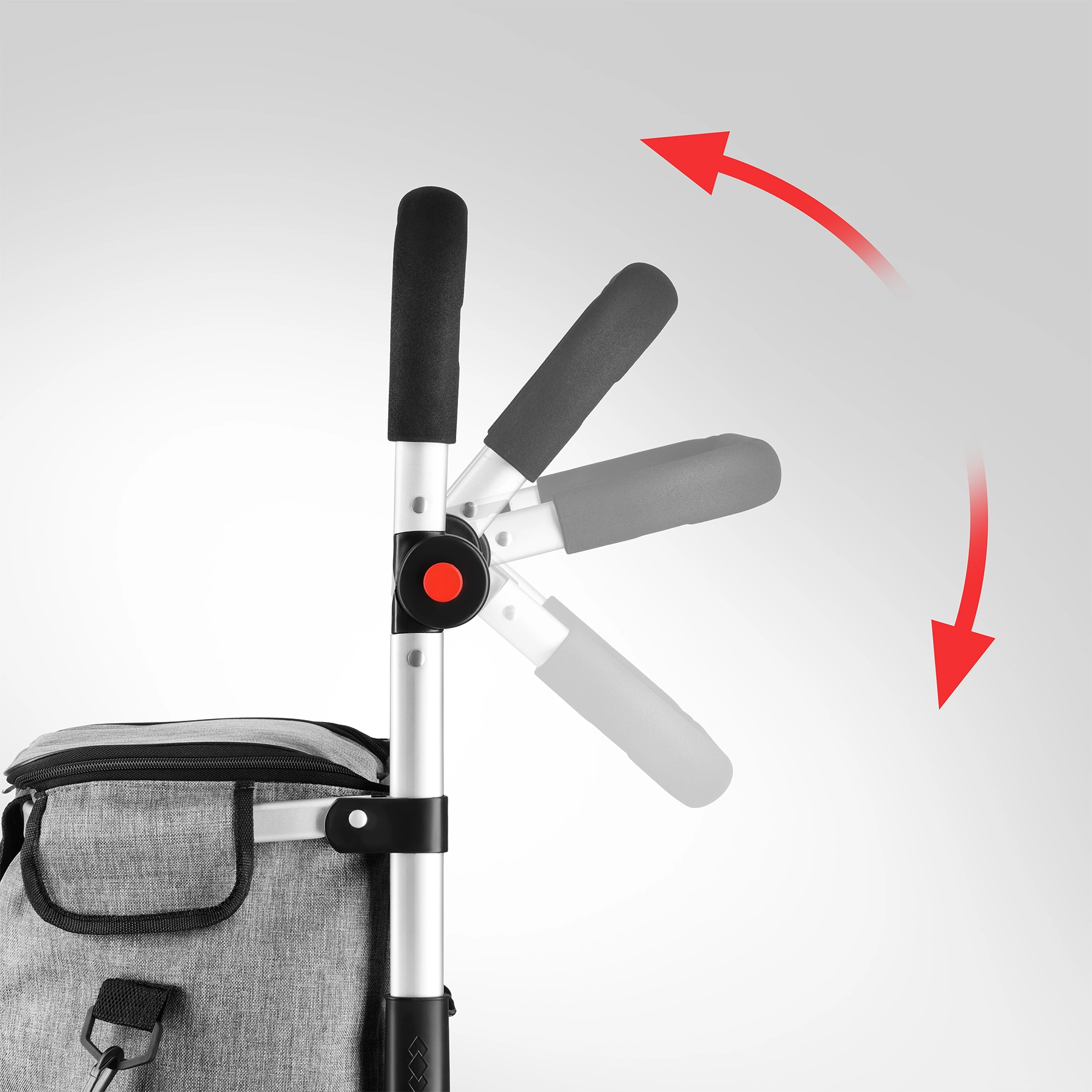 Hjul med en diameter på 21 cm og en bredde på 4,3 cm klarer let brosten og kantsten. Det teleskopiske håndtag med skumgreb kan justeres i 3 positioner.