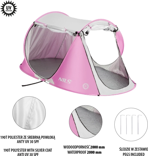 Selvopslående strandtelt NILS Camp pink