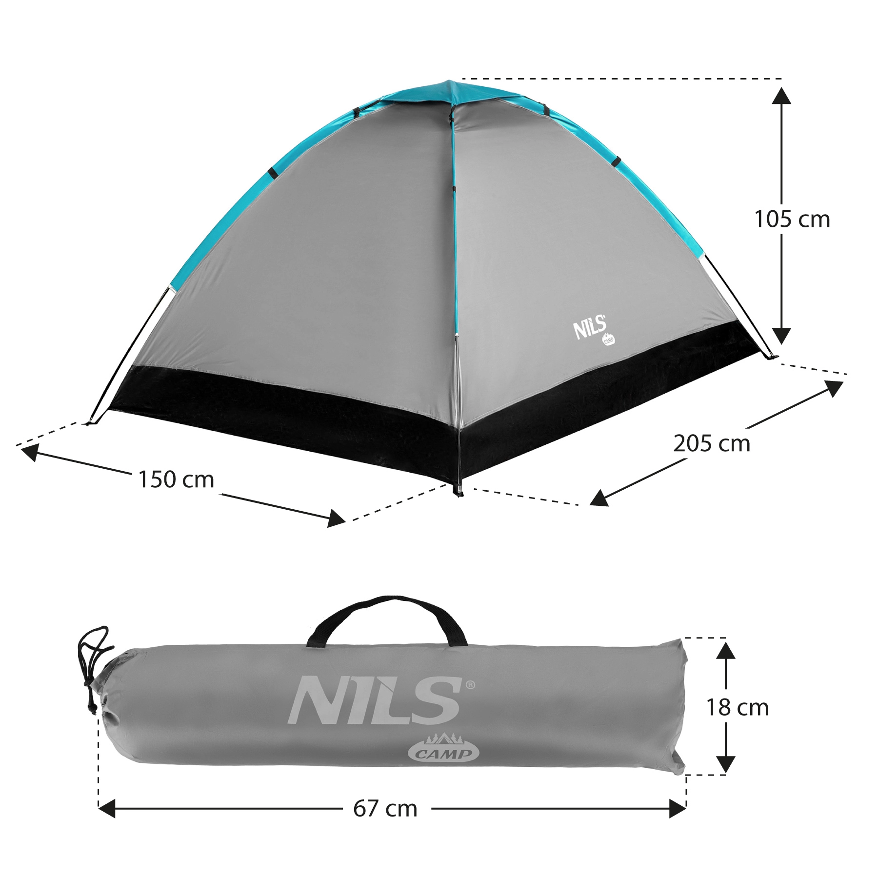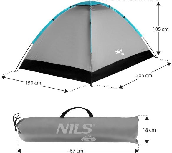 Turisttelt til 2 personer NILS CAMP NC3021 grå