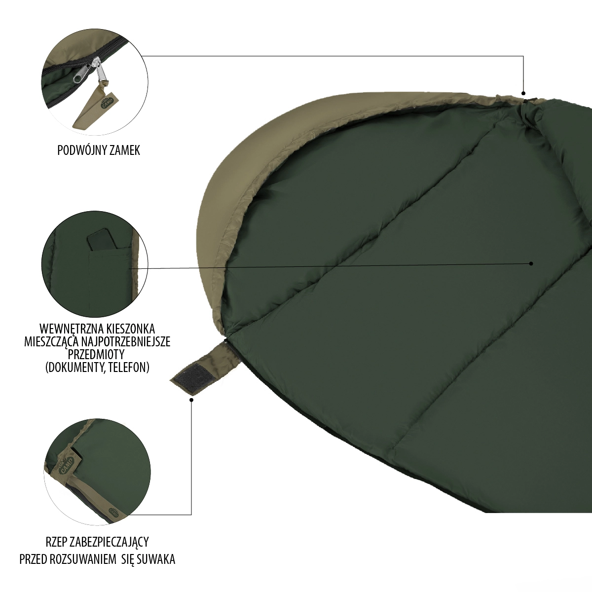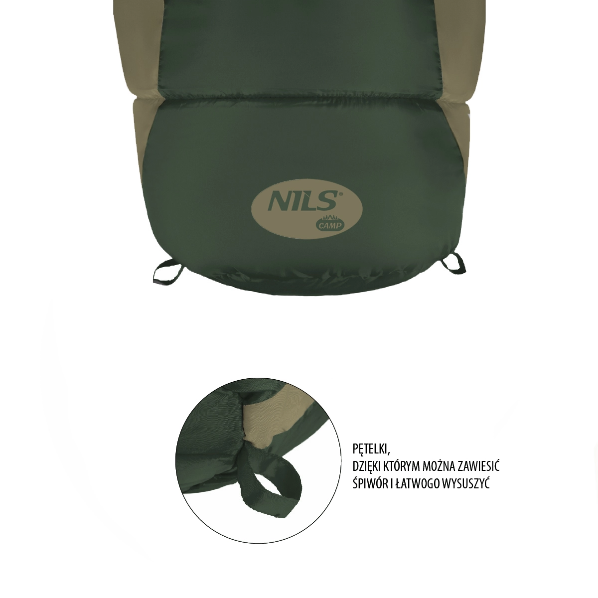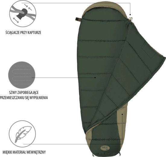 Let og varm mummiesovepose fra NILS Camp er ideel til camping og overnatning i køligere forhold. Takket være den ”mummie”-formede pasform og hætte med snøre holder den varmen effektivt, mens kvalitetsmaterialer 190T og fyld af hulfiber 300 g/m2 sikrer effektiv varmeisolering, lavere vægt og kompakte mål efter pakning. En tovejslynlås med isolerende liste og velcrolukning giver ekstra komfort og beskyttelse mod varmetab.