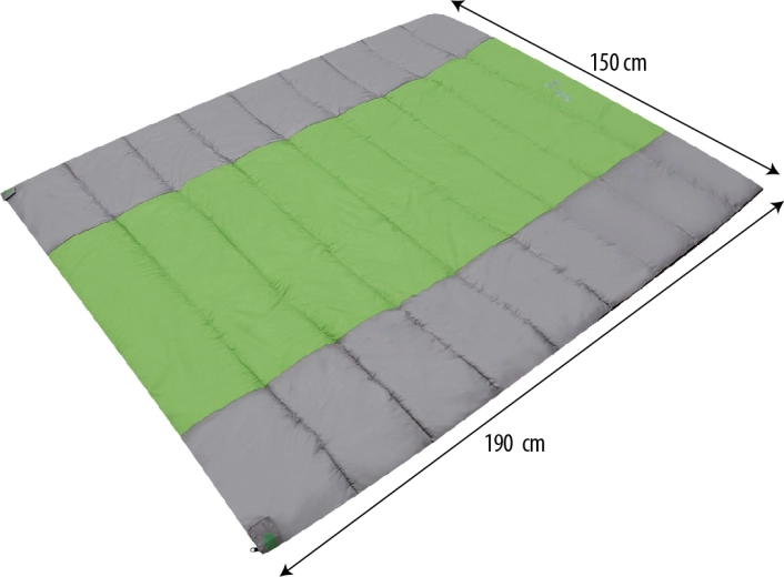 Soveposen til to er designet til at give maksimal varme og komfort under forskellige forhold. Det indvendige 190T Pongee er behageligt at røre ved, det udvendige 190T polyester W/R Cire modstår bedre fugt og kulde, og polyesterfyldet på 250 g/m2 sikrer jævn isolering – understøttet af en kvalitetsquiltning, der forhindrer fyldet i at skride.