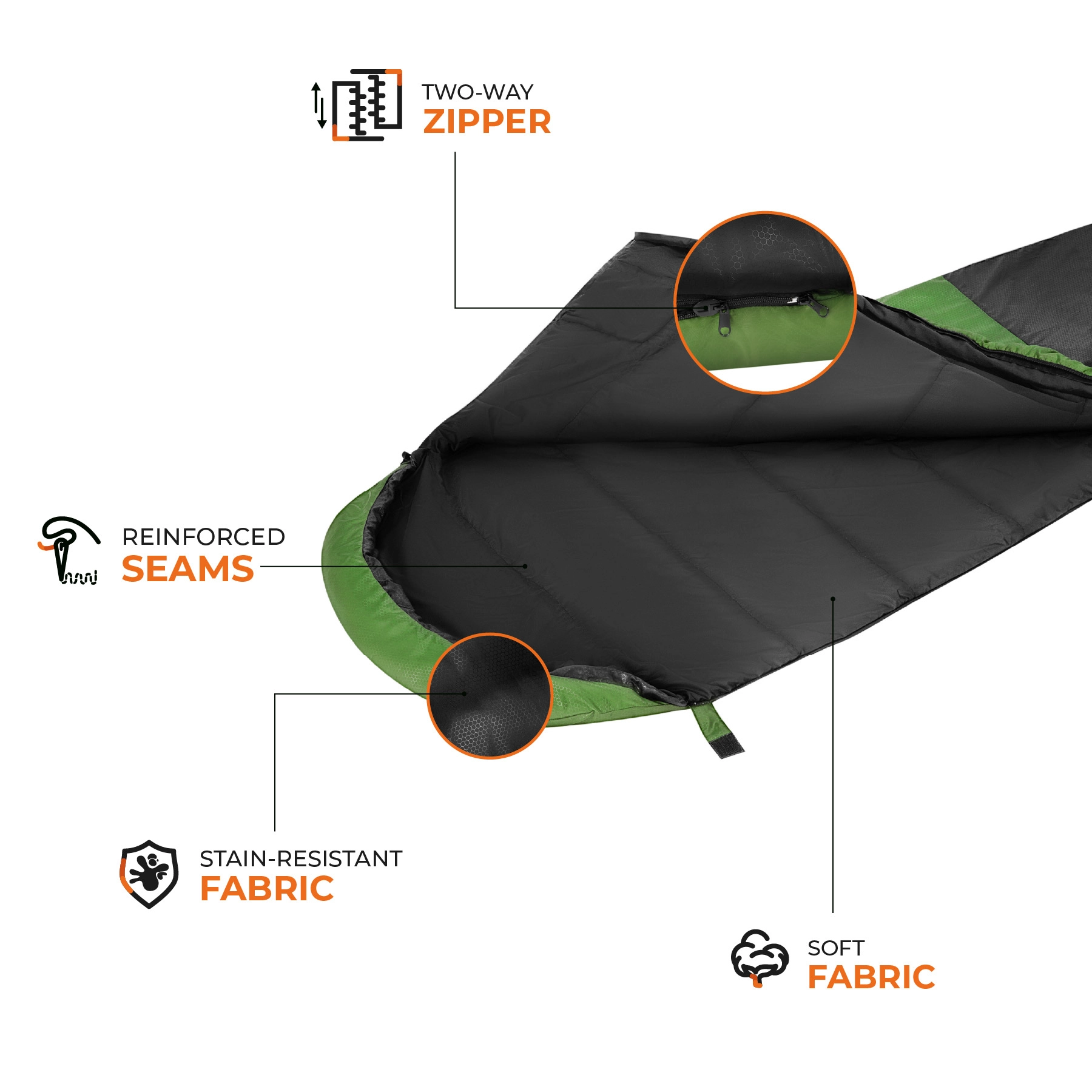 Den ultralette sovepose fra NILS Camp er et fremragende valg for alle, der søger minimal vægt, høj pakbarhed og komfortabel søvn i den varmere del af sæsonen. Mummy-konstruktion med justerbar hætte begrænser varmetab, det dobbelte syntetiske fyld isolerer effektivt, og den bløde mikrofiberforing øger komforten selv ved længere tids brug.