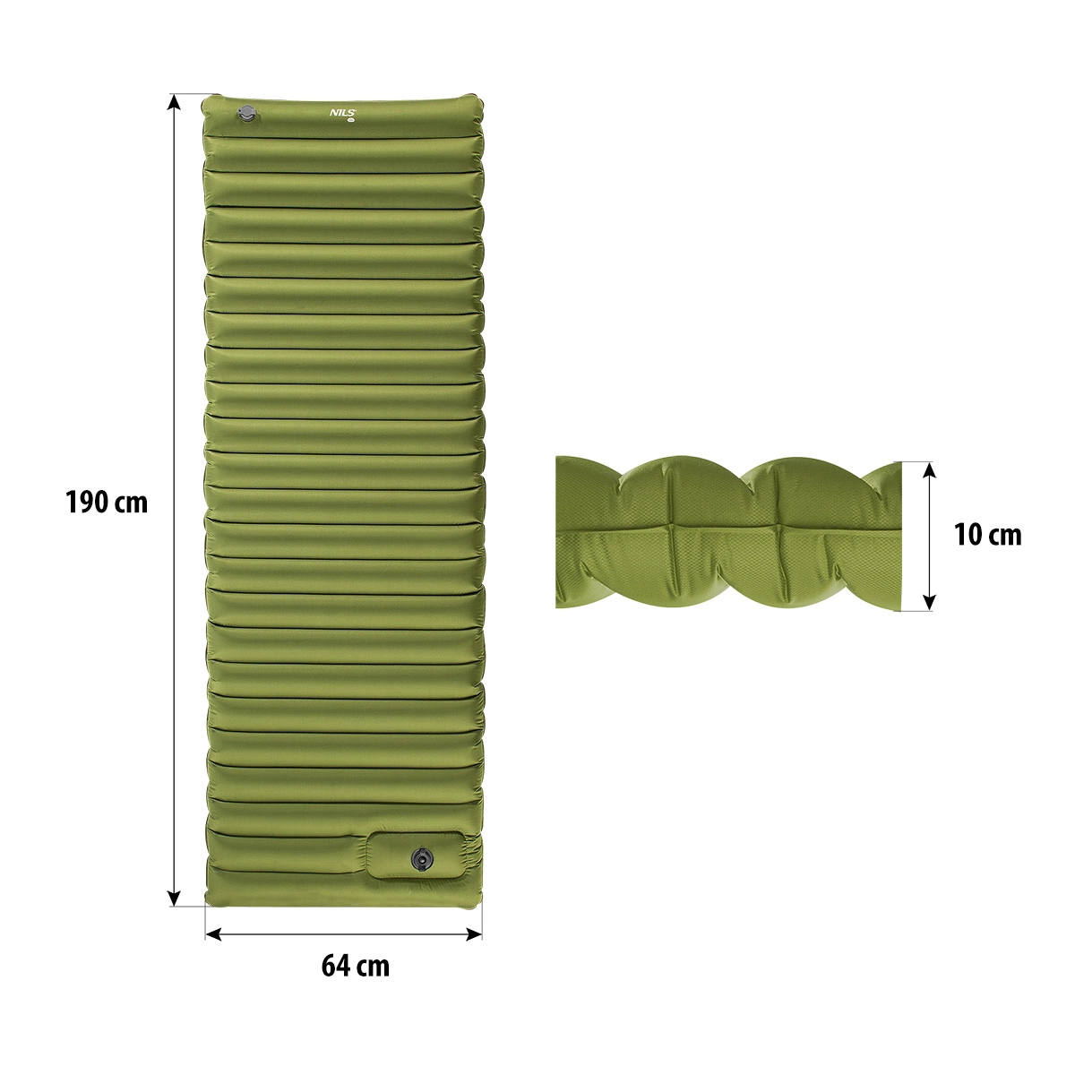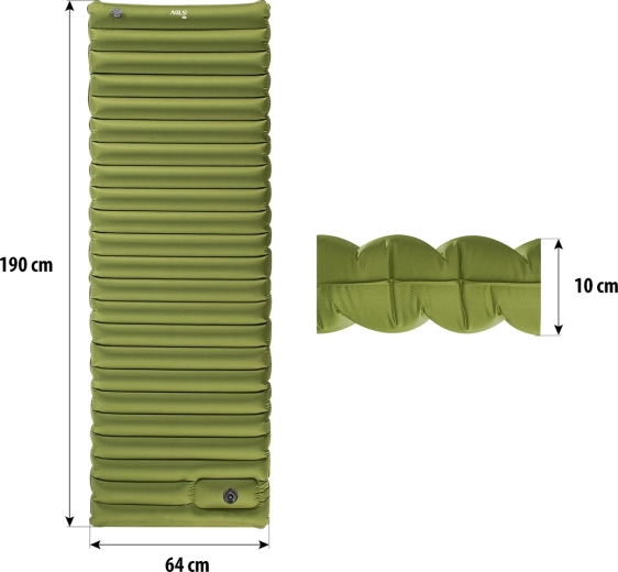 Nyd en rolig nattesøvn væk fra hjemmet. Dette grønne liggeunderlag fra NILS Camp med indbygget fodpumpe pustes op på et øjeblik – brug korte, hurtige trin på pumpen, og på et minut er det klart. Ved fuld oppustning når det en komfortabel højde på 10 cm, hvilket giver fremragende isolering fra jorden og udjævner terrænets ujævnheder.
