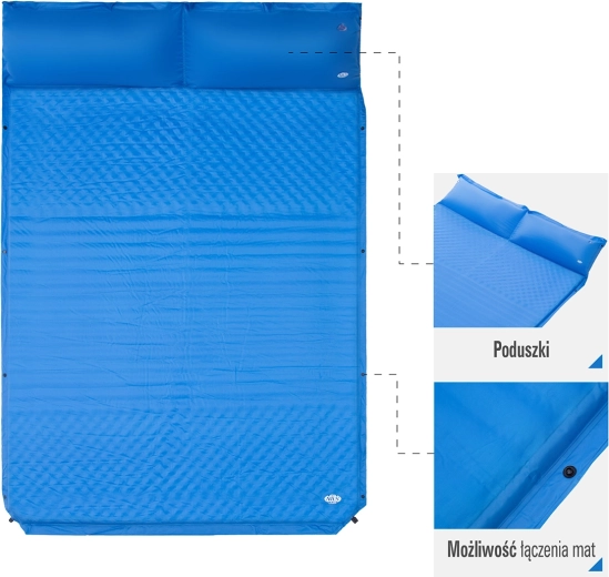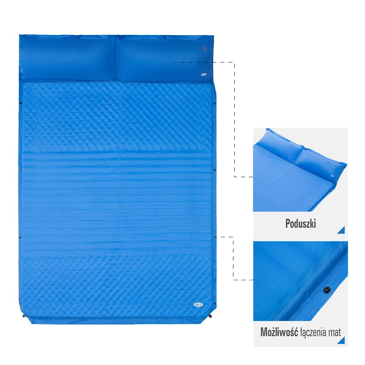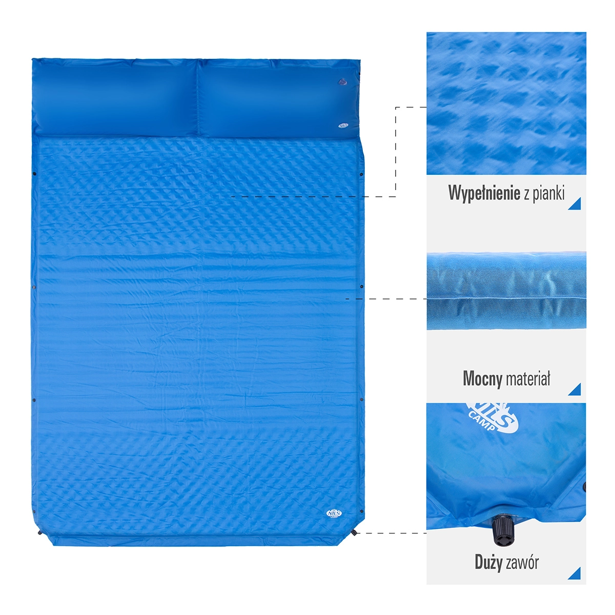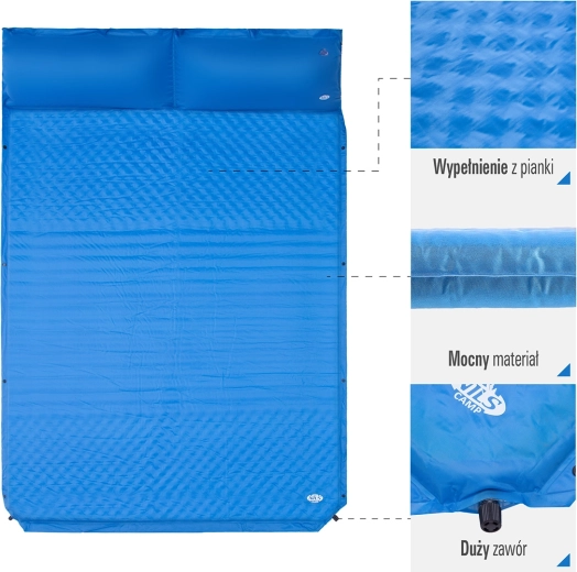 Det selvoppustelige liggeunderlag NILS CAMP NC4060 er designet til maksimal komfort for to personer. Takket være automatisk luftfyldning efter åbning af ventilen er der ikke behov for pumpe, og du får på få øjeblikke en stabil og behagelig liggeflade. Bredden på 130 cm giver god plads til par såvel som enkeltpersoner, der foretrækker mere rum.