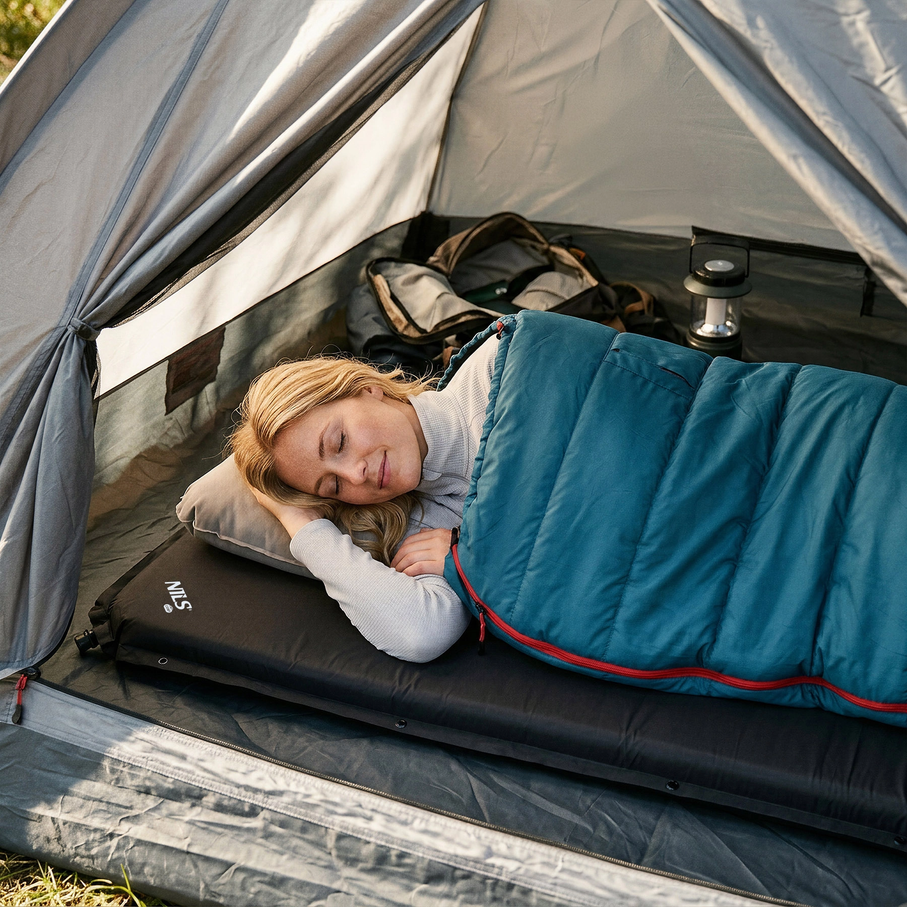 NILS Camp-liggeunderlaget kombinerer komfort, holdbarhed og hurtig klargøring. Det er nok at åbne ventilen og lade det pustes op af sig selv; om nødvendigt kan du efteroppuste til den ønskede fasthed. Takket være kvalitets PU-skum og slidstærk polyester 190T giver det fremragende isolation fra jorden og stabil støtte til hele kroppen.