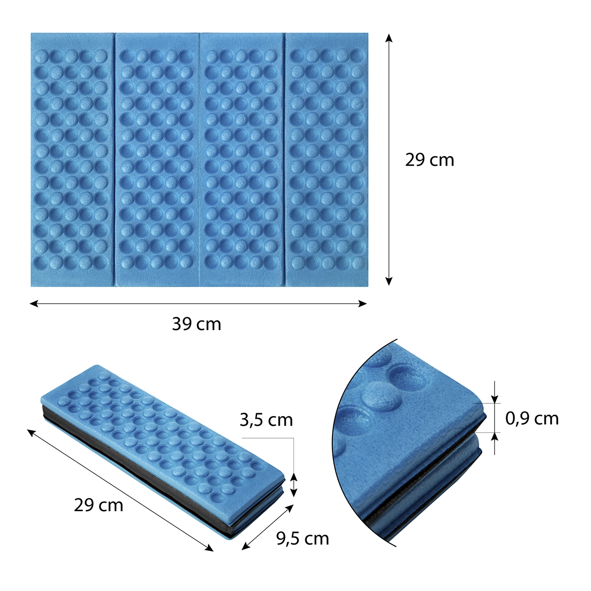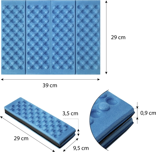 Let og holdbart sammenklappeligt sæde af XPE-materiale til behagelig udendørs siddestilling. Giver fremragende termisk isolering, skridsikker komfort og minimale mål efter foldning for nem transport på ture, i camping og i haven.