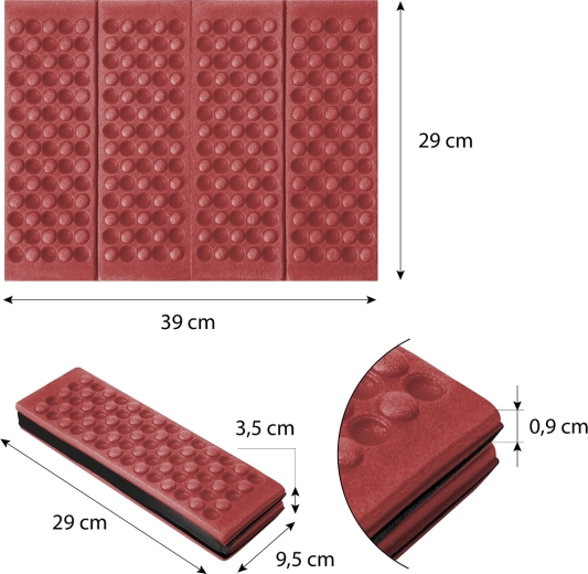 XPE-materialet udmærker sig ved lav vægt, høj holdbarhed og termisk isolering i forskellige vejrforhold. Sædet er nemt at vedligeholde og fylder minimalt i rygsækken eller lommen, når det er sammenfoldet.