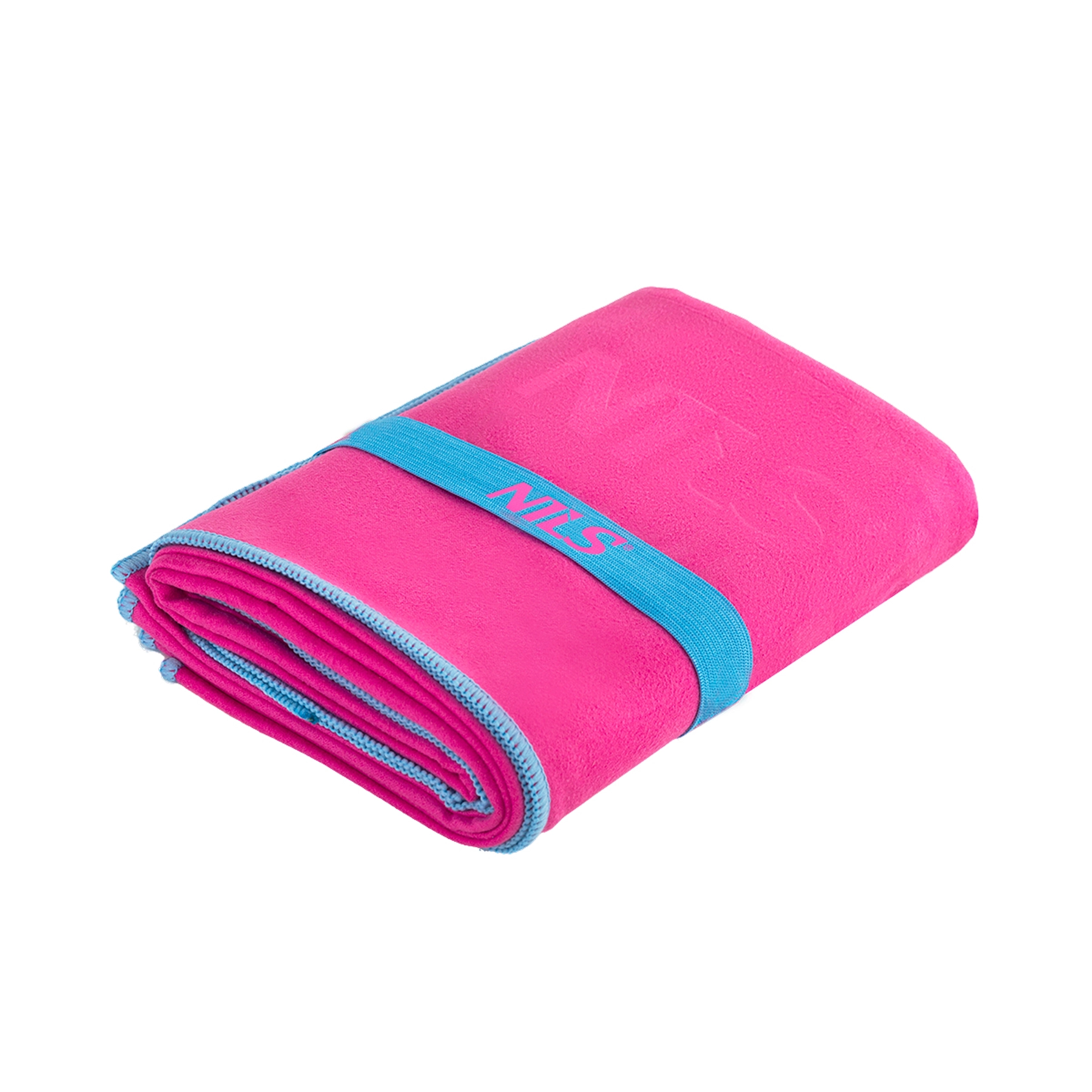 Let og kompakt mikrofiberhåndklæde fra NILS Camp i rosa‑blå farve er ideelt til ferie, ved vandet, til fitness og camping. Takket være sin supersugende og hurtigttørrende struktur tørrer det hurtigt hele kroppen og er klar til brug igen på få minutter. Det er blødt at røre ved, solidt kantet mod trevler, og efter foldning sikres det nemt med en praktisk elastik.
