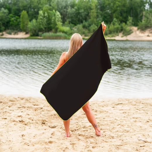 Det lette og behagelige materiale er perfekt til strand, sø og camping. Målet 140 × 70 cm sikrer komfortabel aftørring.
