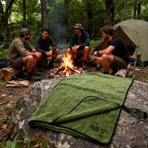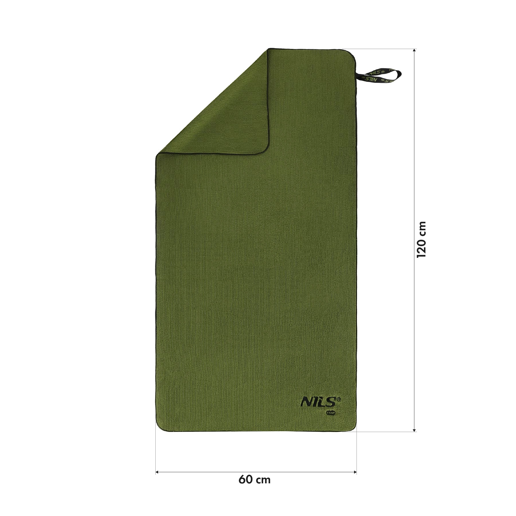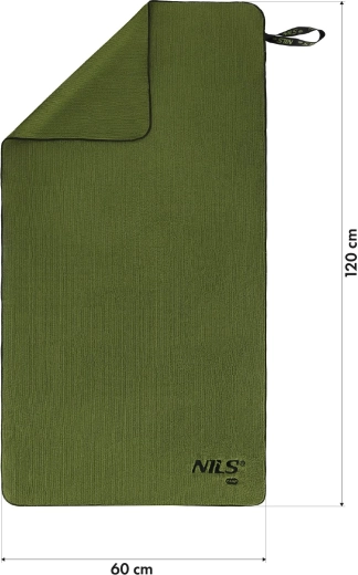 Oplev komfort på farten med NILS Camp håndklæde af kvalitetsmikrofiber (88 % polyester, 12 % polyamid, 300 g/m²). Materialet er blødt mod huden, absorberer vand fremragende og tørrer flere gange hurtigere end almindelige bomuldshåndklæder. Den khaki farve matcher outdoor-udstyr og skjuler praktisk snavs.