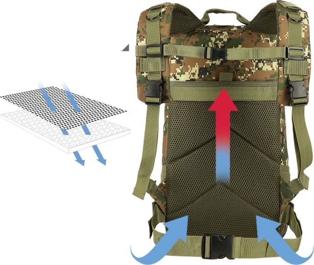 Komforten sikres af polstret ryg i mesh med NILS Vent for luftcirkulation, justerbare skulderremme samt bryst- og hoftebælte for bedre vægtfordeling. Der mangler heller ikke kompressionsremme til at reducere volumen og elastiske løkker til fastgørelse af tilbehør.