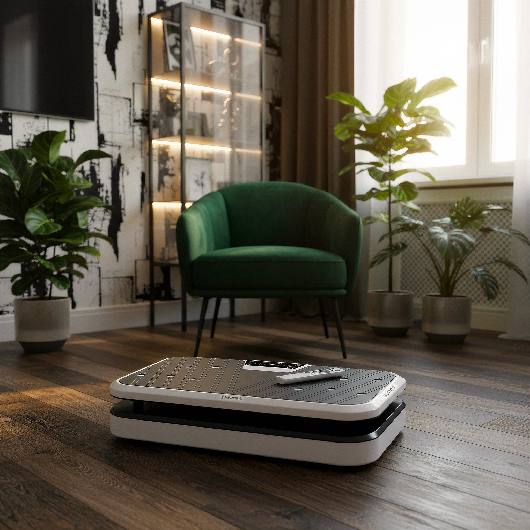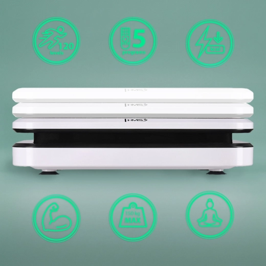 HMS SVP09 kombinerer effektive vertikale vibrationer i op/ned-aksen med en amplitude på op til 2,8 cm, som aktiverer selv de dybe muskelgrupper. Det brede område med 120 hastighedsniveauer og 5 forudindstillede programmer gør det muligt at tilpasse træningen til fedtreduktion, muskelstyrkelse og forbedret cirkulation. Betjeningen er intuitiv via et overskueligt panel eller den medfølgende fjernbetjening.