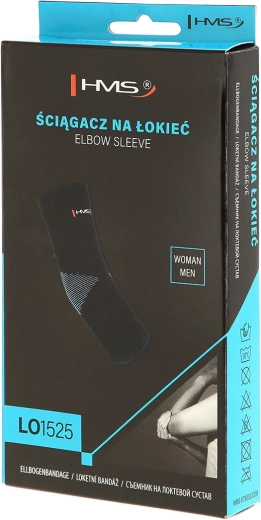 Det lette og behagelige albuebind HMS LO1525 giver stabil støtte uden at begrænse bevægelsen. Takket være den elastiske blanding af nylon og elastan sidder det tæt mod huden, holder på varmen, understøtter blodcirkulationen og hjælper ved smerter, betændelse og rekonvalescens.