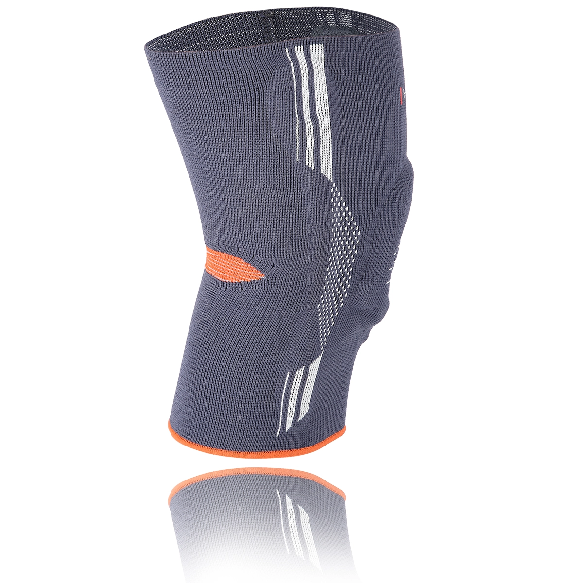Den integrerede silikone-ring positionerer knæskallen præcist, forbedrer knæets føring og hjælper med at forebygge overbelastning og smerter.