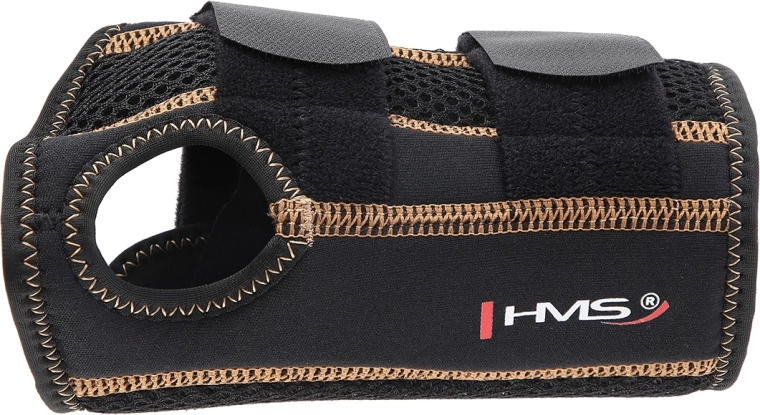 Den højresidede håndledsbandage HMS NA1590 giver pålidelig stabilisering ved hjælp af aluminiumsskinner, samtidig med at den ikke begrænser bevægelsen af fingre og tommel. Elastisk polyester med justerbar kompression holder på varmen, fremmer blodgennemstrømningen og lindrer smerte ved håndledsproblemer, efter fjernelse af gips eller ved karpaltunnelsyndrom.