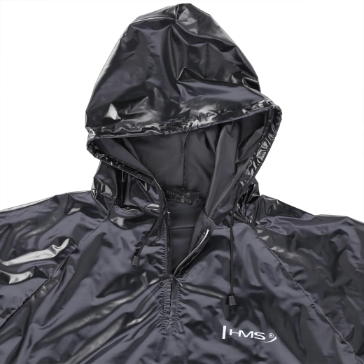 HMS DSS12 er et praktisk saunasæt bestående af bukser og langærmet trøje med hætte, som øger den termiske effekt under træning. Det uigennemtrængelige materiale understøtter intens svedproduktion, hvilket fører til hurtigere væskeudskillelse og øget kalorieforbrug. Ideel til kortvarig formning af kroppen før konkurrencer eller fotoshoots.