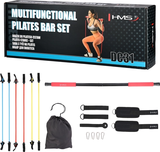 HMS DC31 er et komplet sæt til hjemmetræning, der gør det muligt at efterligne øvelser med håndvægte og modstandsbånd. Den robuste stang i stål med bløde skumgreb kombineres med expanderbånd i forskellige modstande, ankel- og fodremme samt et praktisk døranker. Du kan nemt træne ryg, skuldre, arme, baller og ben og tilpasse modstanden til din aktuelle form.