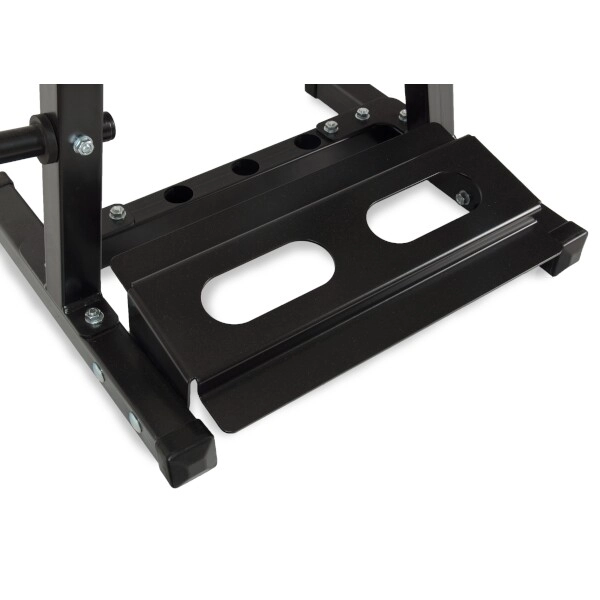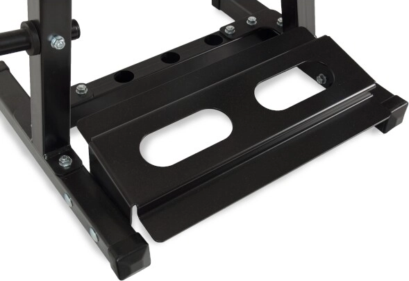 Takket være den smarte placering af opbevaringspunkter kan du samle skiver med 25 mm boring, 30 mm stænger og håndvægte på ét sted. Du sparer plads, forkorter pauser mellem sæt og minimerer risikoen for skader på udstyret.