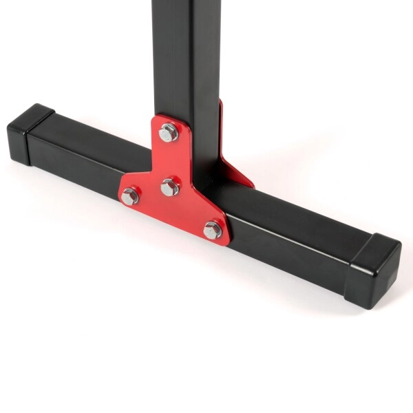 Stålprofiler 40×40 mm og brede fødder sikrer stabilitet ved både dynamiske og statiske kropsvægtøvelser.