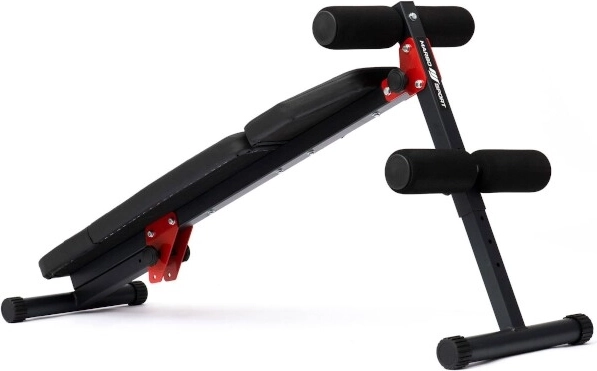 Takket være det enkle system til hurtig sammenklapning kan du nemt opbevare den for eksempel under sengen. Bænken muliggør flere vinkelindstillinger (15°–22° + flad), så du kan tilpasse intensiteten til mavetræning, rygmuskler, skuldre samt træning med håndvægte. Gummiovertræk på stabilisatorerne øger grebet og beskytter gulvet mod skader.